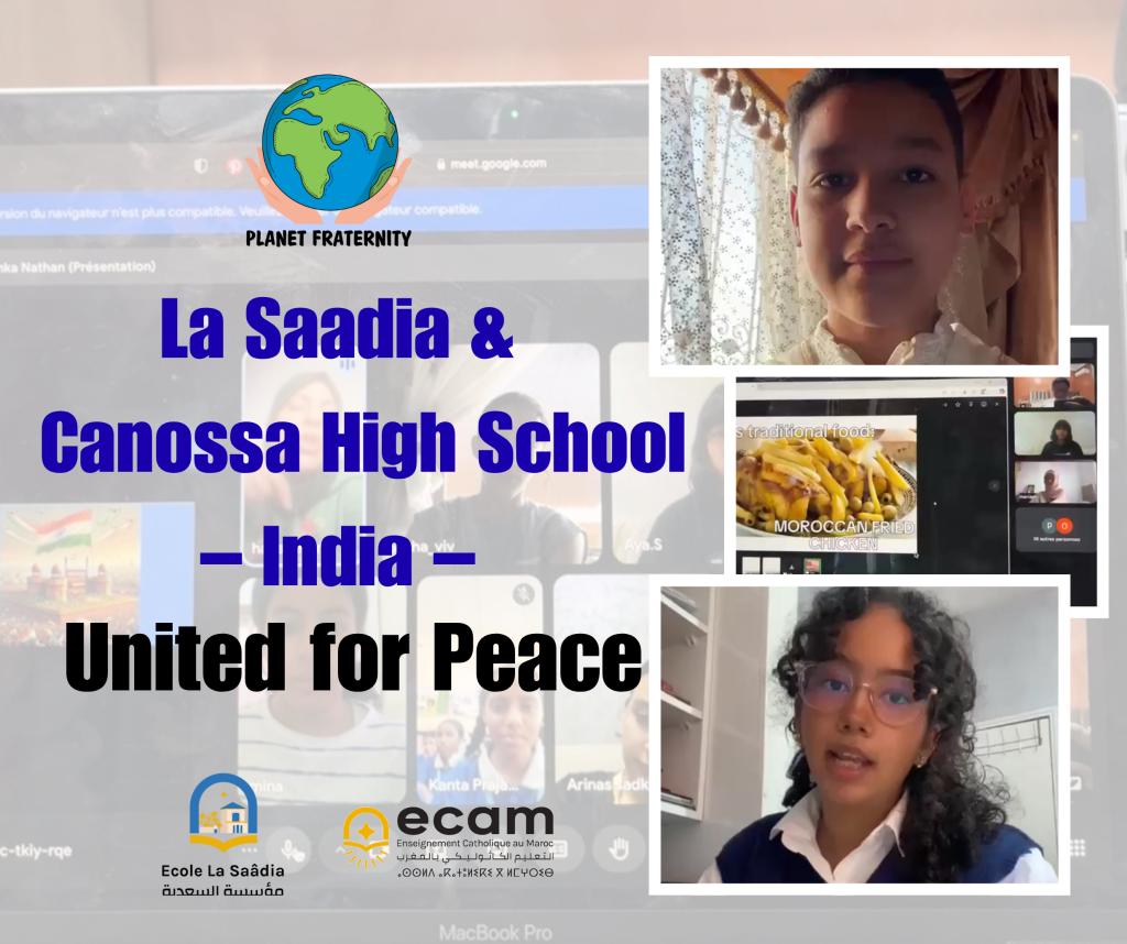 L’École La Saadia participe fièrement au programme Planet Fraternity, qui favorise la fraternité et la tolérance entre les élèves de l’OIEC.La classe de la 5ᵉ année primaire est jumelée avec le collège Notre-Dame de La Ferté-Macé en France.Le thème de ce semestre est « La Paix ». Ce programme invite à collaborer, partager des idées …