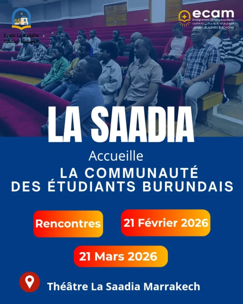 Pour ancrer les valeurs de tolérance et d’ouverture fondatrices du projet éducatif de L’ECAM, l’école La Saadia a accueilli le samedi 21 Mars 2026, une rencontre organisée par des étudiants burundais de Marrakech, en l’honneur de leur Ambassadeur au Maroc. Cette rencontre, s’est déroulée dans de bonnes conditions Grace au soutien qui lui a été …